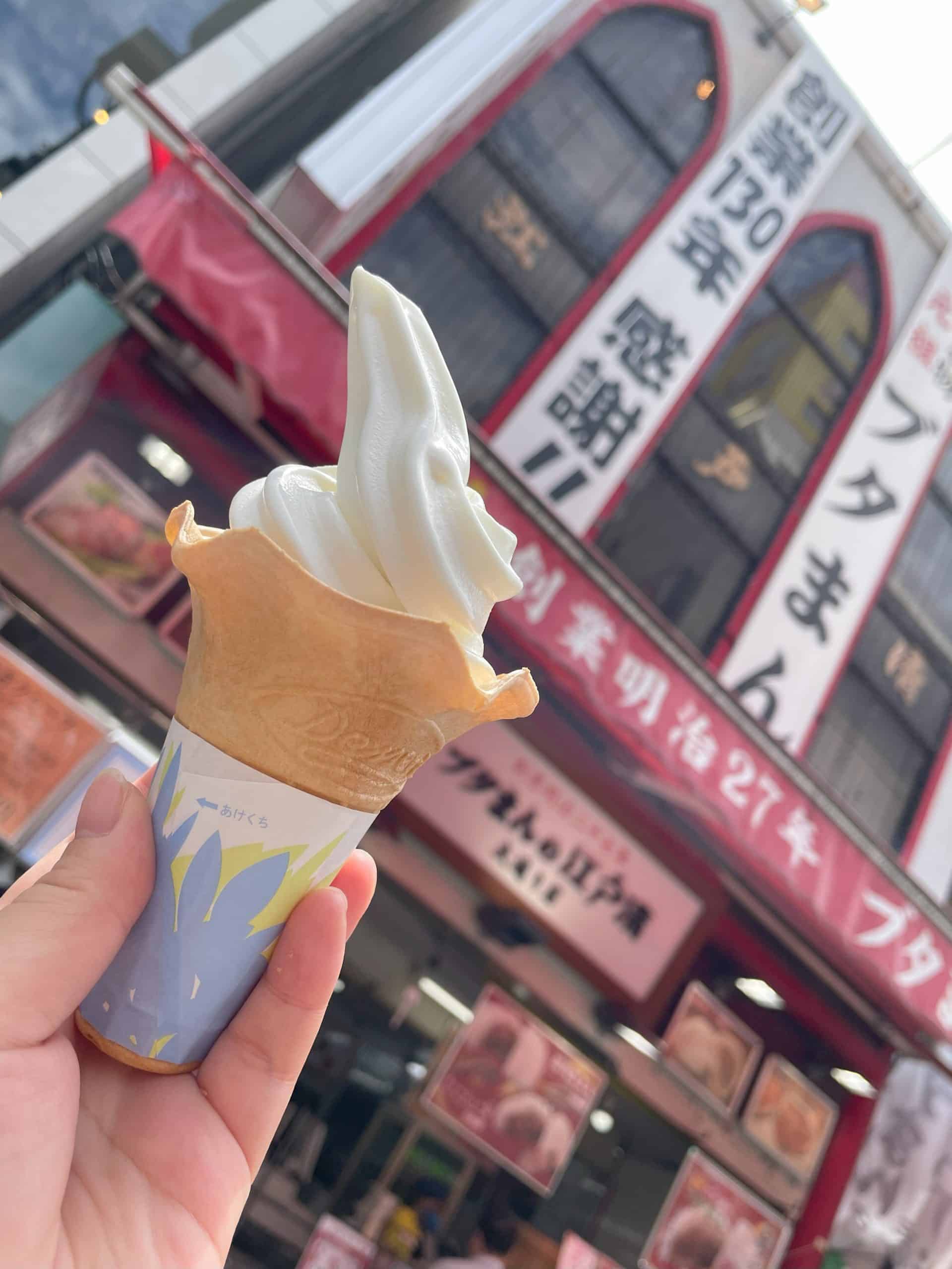 熱々のブタまんと、ひんやり冷たいアイスやソフトクリーム。