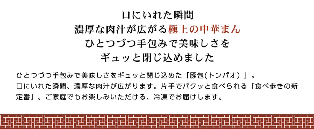 | 原材料名 | 皮[小麦粉(国内製造)、きび砂糖、発酵風味液、発酵種、ラード、食塩]、具[豚肉、長ねぎ、醤油、小麦粉加工品、小ねぎ、牛脂、本みりん、清酒、きび砂糖、昆布だし、食塩、魚醤、酵母エキス調味料]/ベーキングパウダー、(一部に小麦・牛肉・大豆・豚肉を含む) |