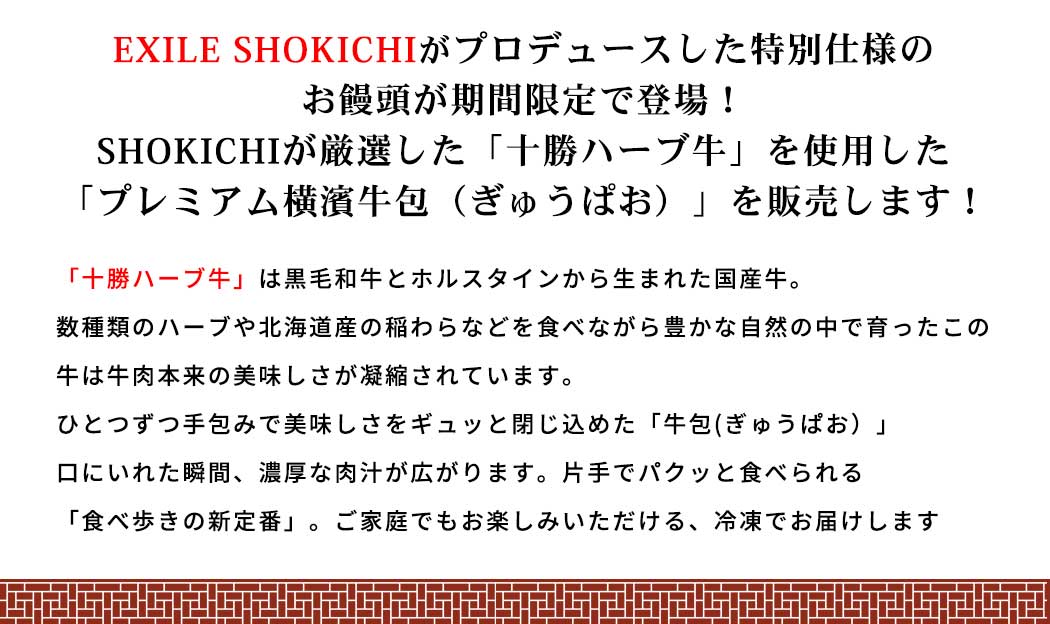 プレミアム横濱牛包(ぎゅうぱお) 6個入り EXILE SHOKICHIがプロデュースしたコラボ商品 スマホサイズのステッカー付き